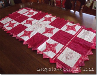 Last year I took part in Chookyblue’s Christmas swap and sent this Start of Bethlehem table runner toNoemia in Portugal. The pattern, by Karen Gledhill, can be found in Creating Country Threads Christmas Special, Vol 11 No 3.