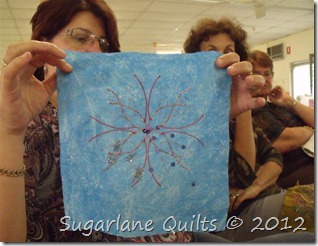 It was such a fun weekend. I’ve never considered myself into art quilting, but boy, did I learn a thing or two….not that I’d change my style much,I’m still a stitchery gal, but I now am looking at some techniques quite differently!!! The most reluctant in our group were even free motion quilting with ease by the end of the two days……. Sue was really, really good to work with and easy to understand, so if your group is looking for a tutor, just email me and I’ll pass on her details! I can recommend her highly!